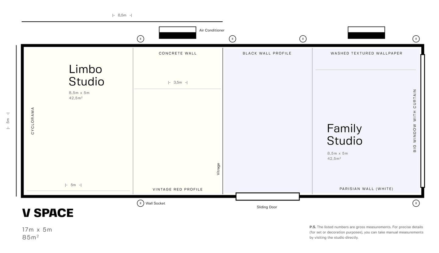 V Space features two versatile studios: the minimalist Limbo Studio, perfect for distraction-free fashion and product shoots, and the elegant Family Studio, inspired by Swedish design, ideal for capturing family moments in a cozy, stylish setting.